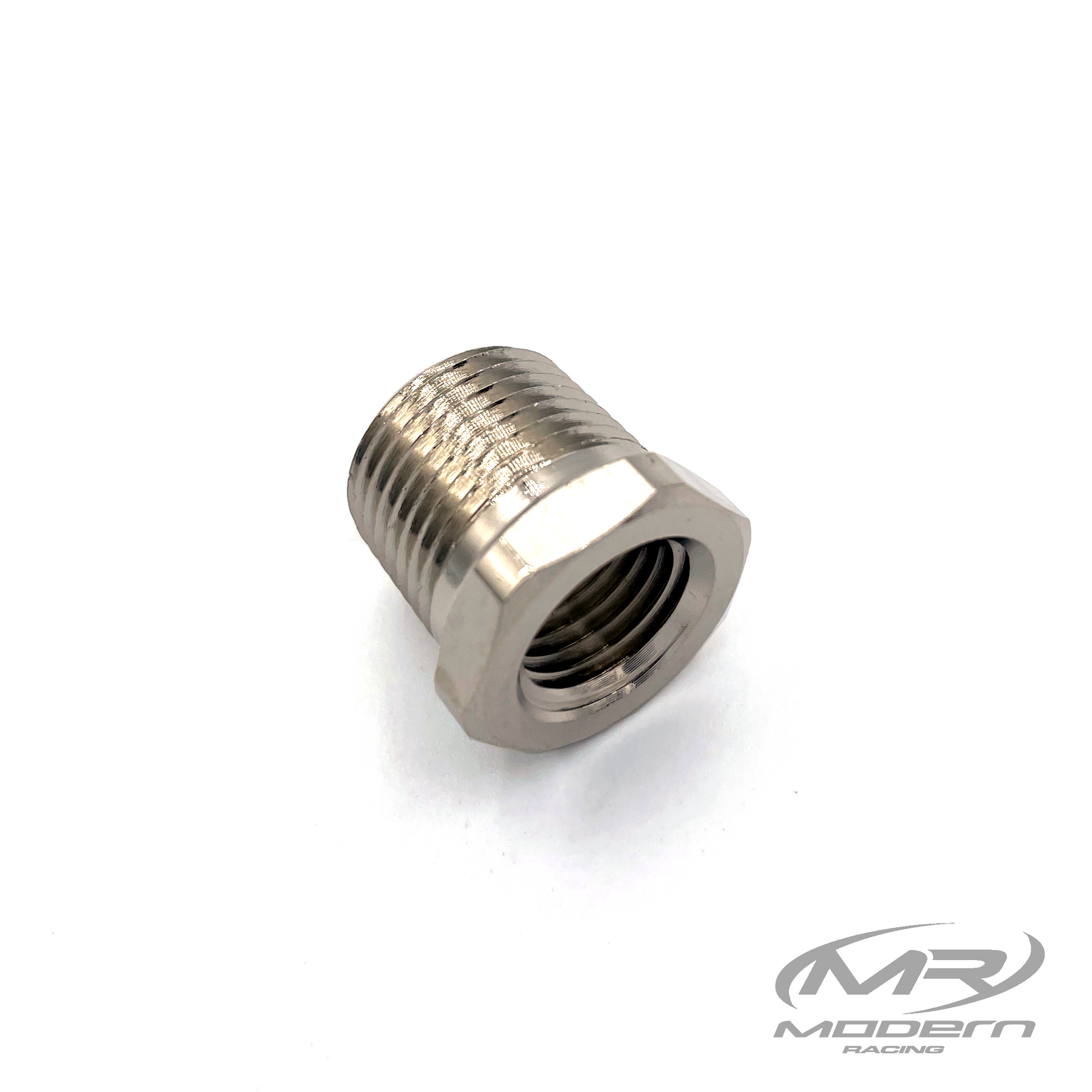 Conector recto de latón NPT hembra de 1/4" a macho NPT de 3/8" (niquelado)