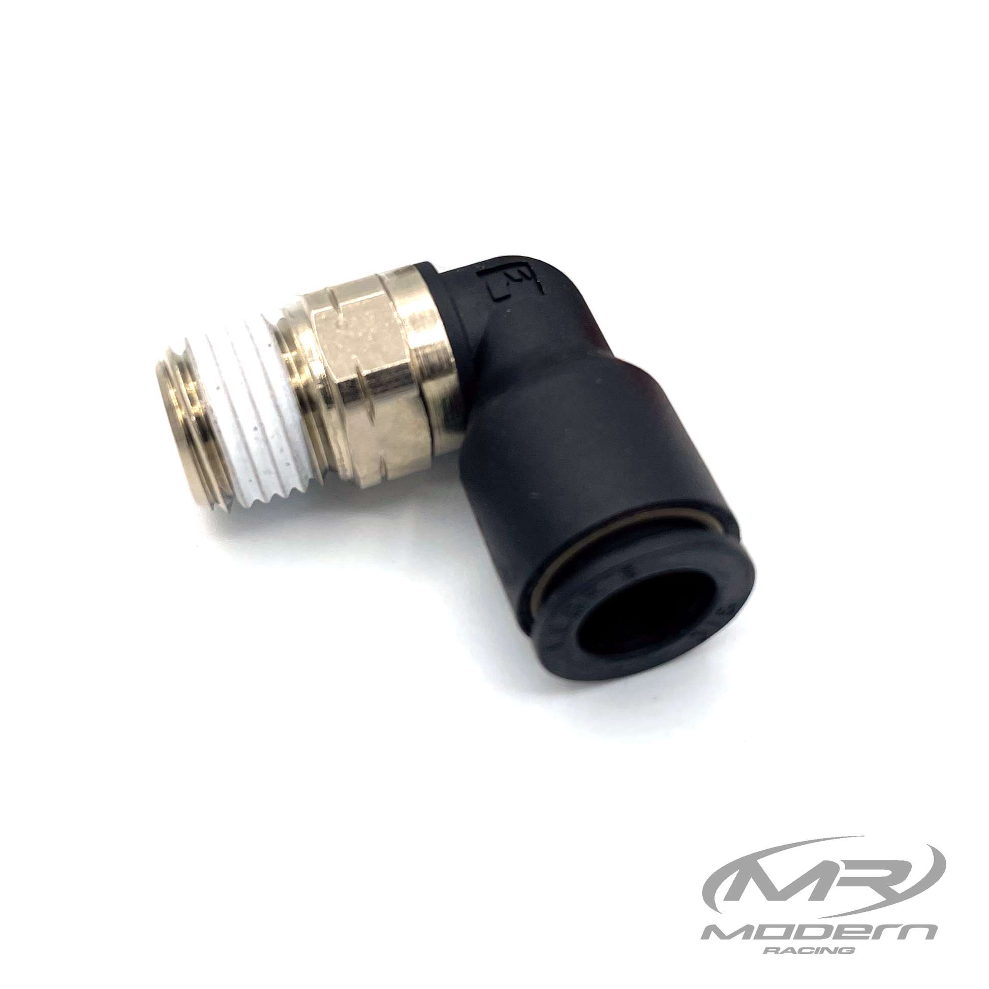 Conector de aire hembra Push-Loc de 3/8" a macho NPT de 1/4" 90* Latón/plástico (niquelado)
