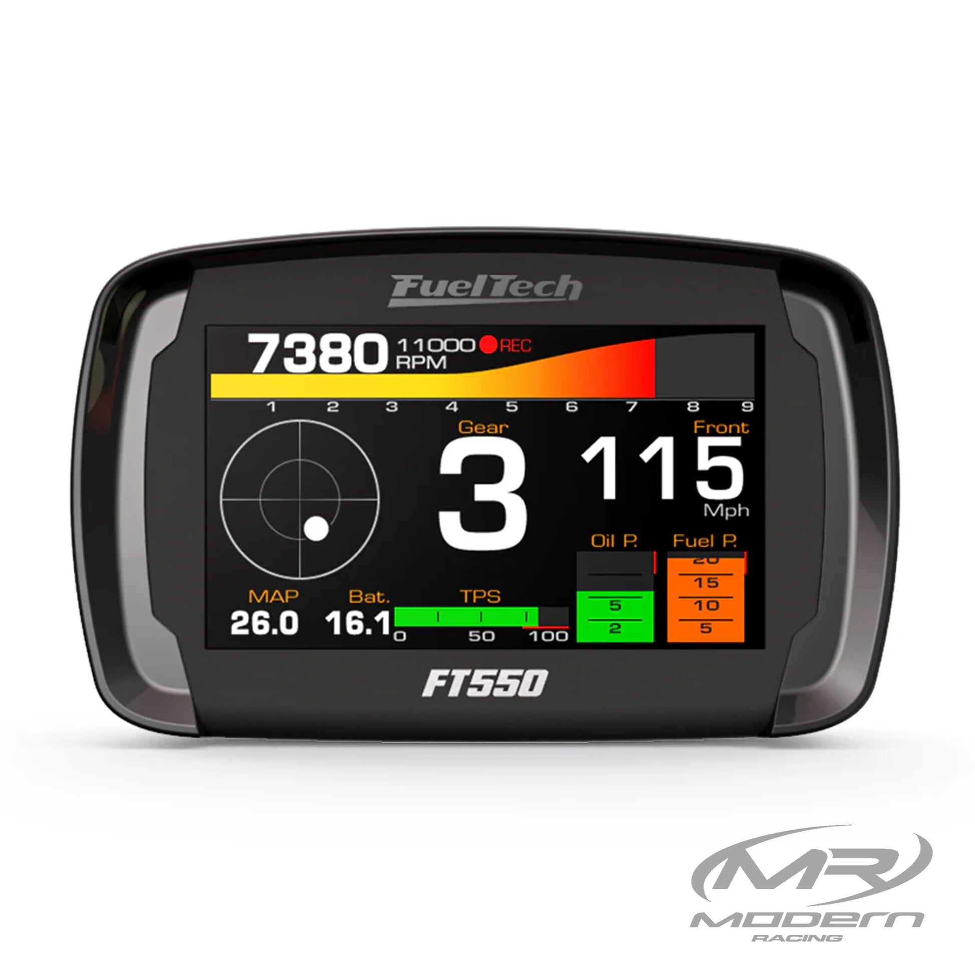FuelTech's FT550 is more than an ECU offering electronic fuel injection, integrated dashboard, data acquisition, and power management. The FT550 is designed for engines with up to 12 cylinders, or up to 4 rotors, and features 14 programmable inputs and 24 outputs. In addition to offering all of the features and functions of the FT450, including touchscreen display, 4 programmable display screens, customizable splash screen, sequential injection and ignition, O2 closed loop, active traction control, integrated boost controller, internal datalogger, progressive and PRO-Nitrous controls, odometers, drag racing features, the FT550 is loaded with additional features such as electronic throttle control, inclinometer gauge, integrated GearController with strain gauge sensor on the shifter for more efficient gear shift cuts, built-in accelerometer (G-meter), and gyroscope. The FT550 is housed in a high-quality ABS case and is IP67 rated for marine and off-road applications.