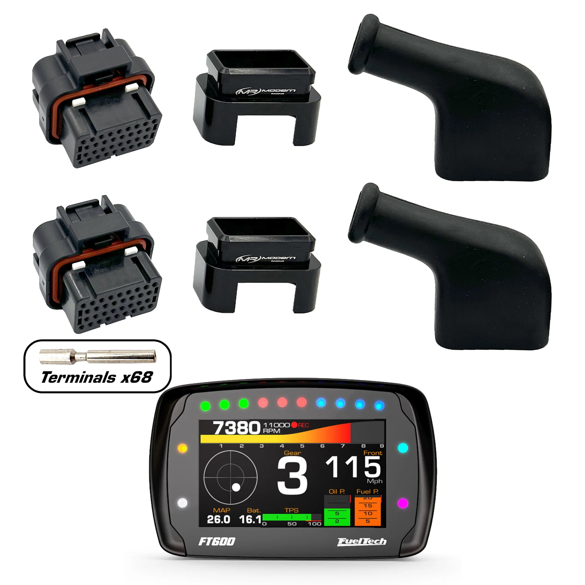 Each connector kit is offered with different backshell and boot options, which can add extra protection and a nice aesthetic touch to your harness. Our backshells are a patent pending design that offer more internal room than competitors, allowing for more clearance for your wires and safety loops. Boot options include a molded rubber boot with different degree variants (Straight, 70-degree, 90-degree, and 90-degree Up/Down), as well as a Raychem Thermofit heat shrink boot, offered in both straight or 90-degree variants. Use the drop-down menu to select the best combo for you! All combo kit options are sold with enough backshells and/or boots to protect every ECU connector in your kit.
