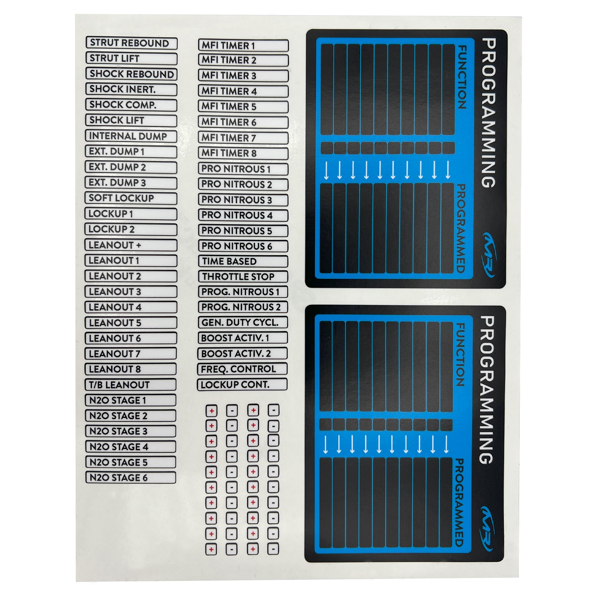 Modern Racing Laptop Program Quick Reference Label Kit (FuelTech)