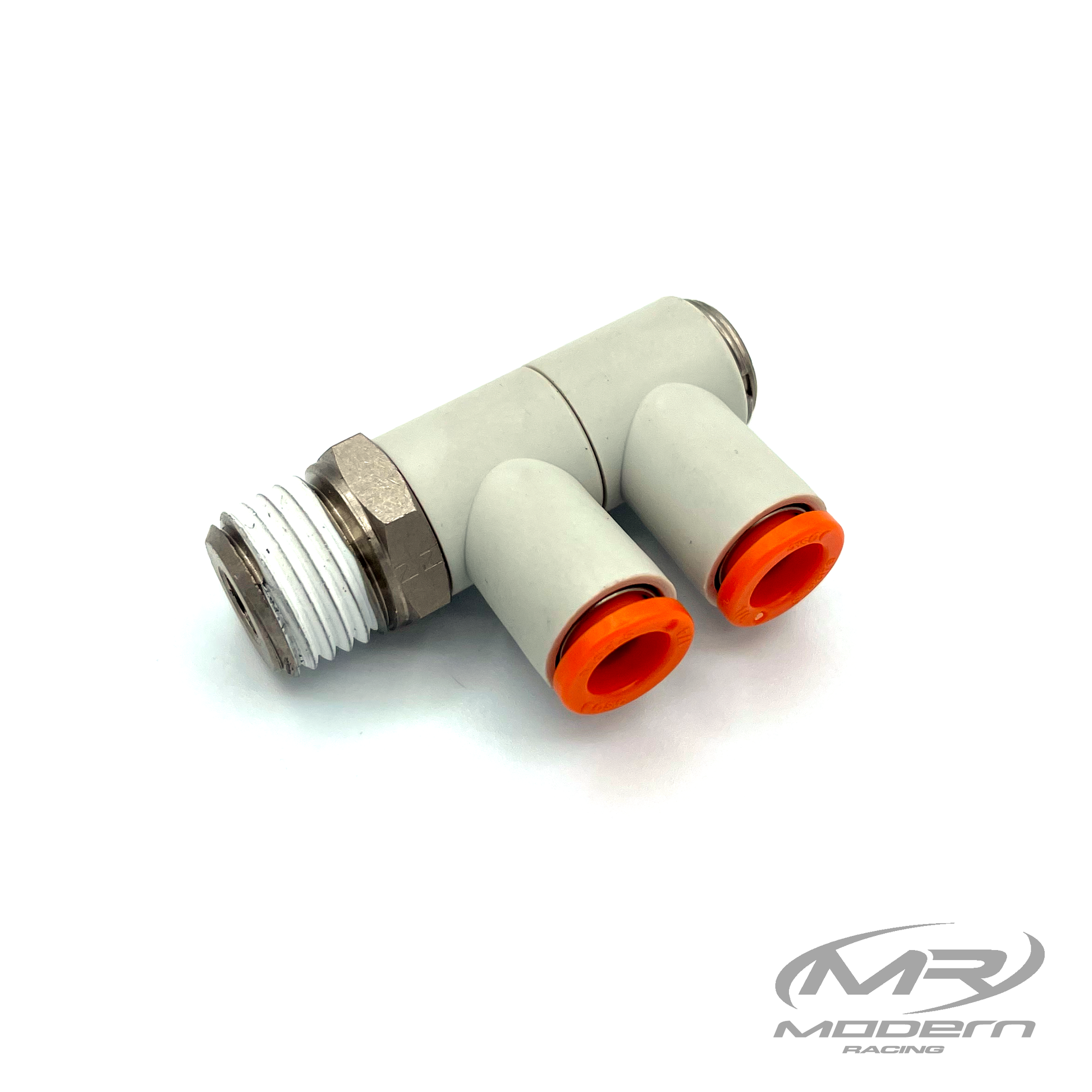 1/4" Push-Loc Female To 1/4" NPT Male 2-Outlet Swivel 90* Air Fitting Brass/Plastic (Nickel Plated). Full 360* rotation.