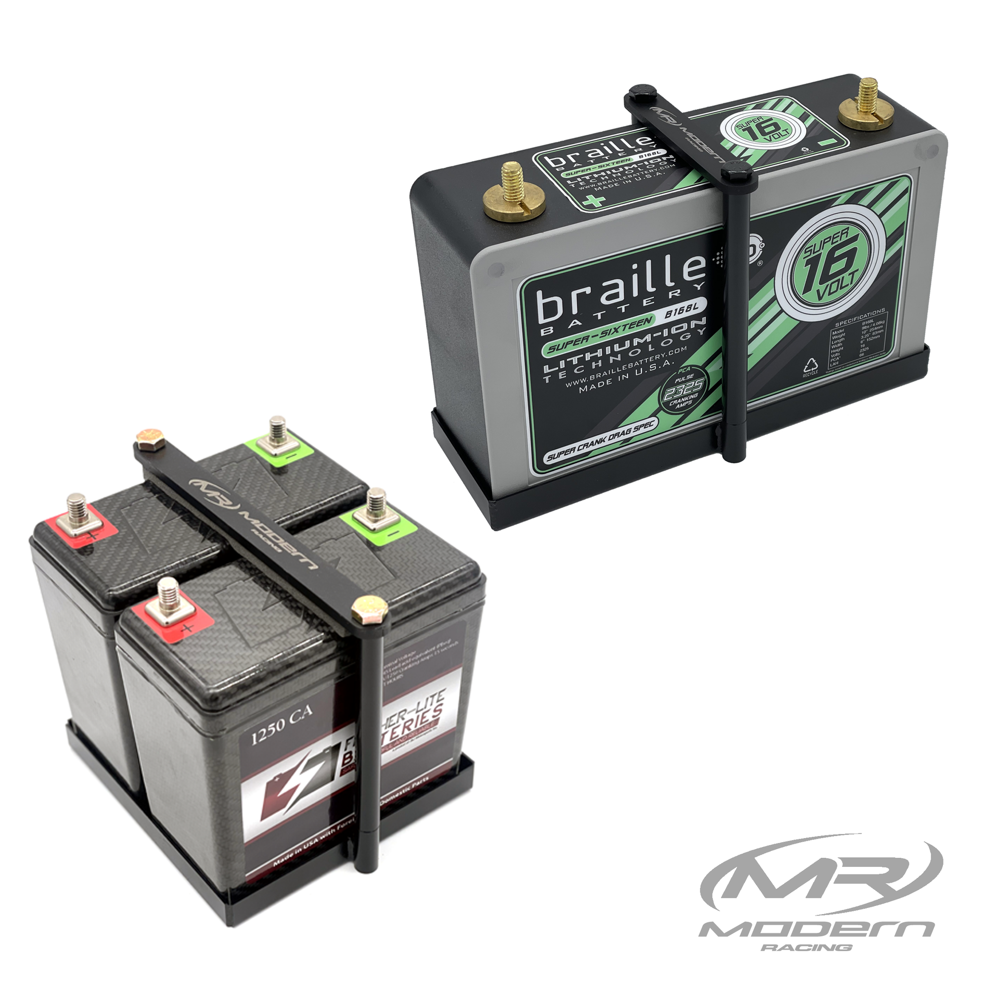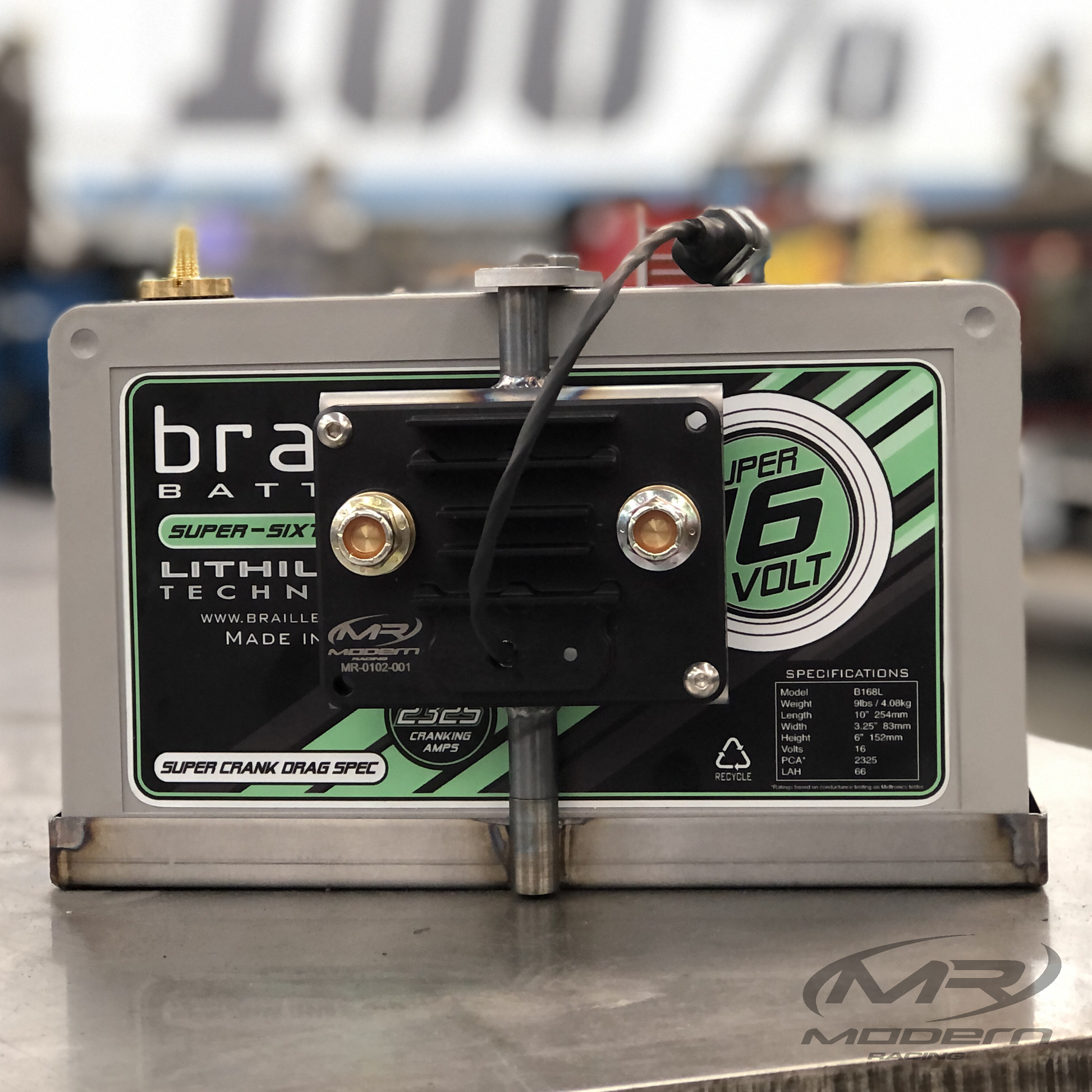 All kits come complete with a Black anodized and laser engraved Modern Racing battery hold-down, to let everyone know you're backed by a brand that offers results. Available with a complete box option and a welded mount for our awesome solid-state battery disconnect, this mount takes all the guess work out of your battery install. Worry about winning, not wiring!