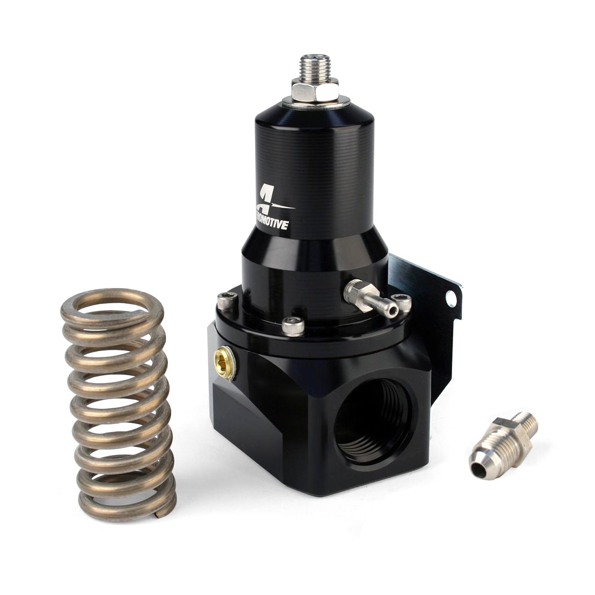 Control your fuel pressure with one of these Aeromotive Extreme Flow EFI fuel pressure regulators. They're manufactured from durable aluminum, then anodized for maximum protection. The regulators include a standard spring (installed) that supports 30-75 psi base fuel pressure and a high pressure spring (included) to support 75-120 psi base fuel pressure. Aeromotive Extreme Flow EFI fuel pressure units also support vacuum and boost reference on a 1:1 ratio.