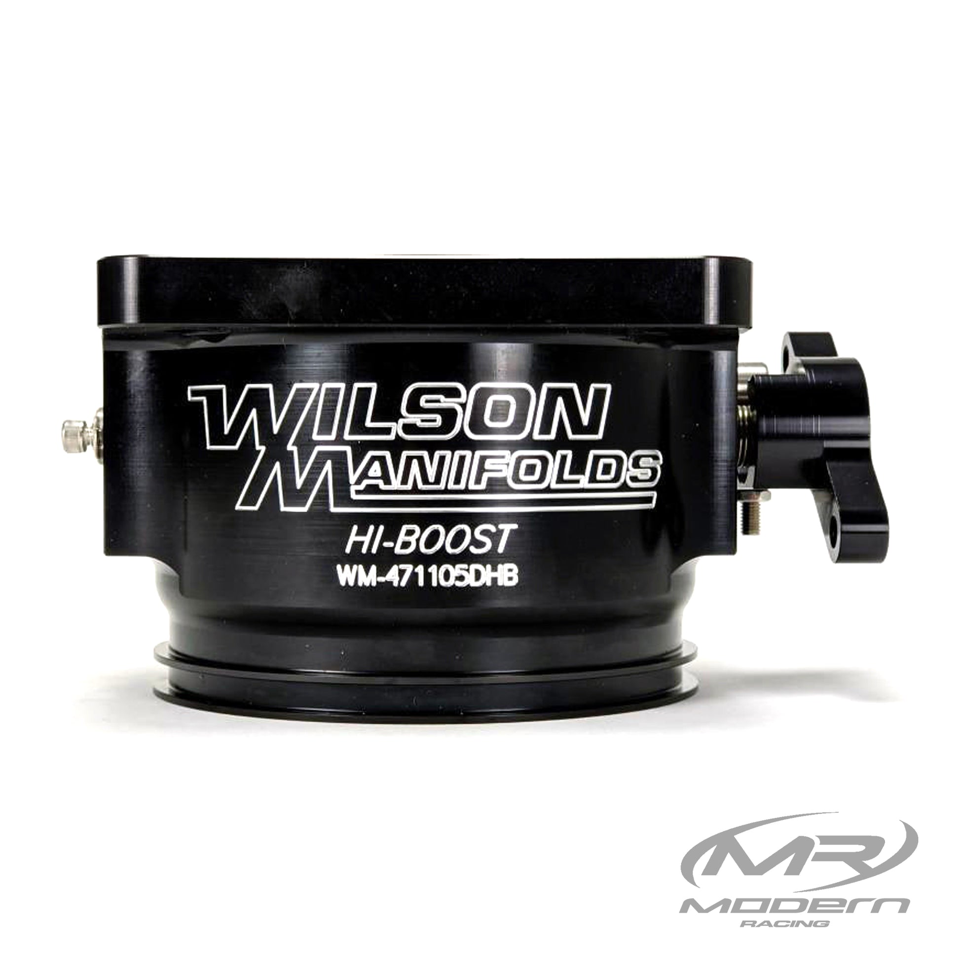 The 105mm HI-BOOST (HB series) of performance throttle bodies is a new addition to the Wilson Manifold line-up. Specifically developed for severe duty and high boost applications, the new design provides improved performance and durability. We start with a sealed shaft that is pressure tested to 100 psi and stable under the high engine temperatures and high inlet air temps seen in competition and high-power street applications. Next, we've redesigned the mounting coupler for the TPS sensor to eliminate erratic signals sometimes seen under high boost. Then the blade is installed in a split-shaft for superior strength – counter-sunk mounting screws hold the blade in a contoured design for improved airflow at full throttle. Initially offered in the popular 105mm opening, additional sizes will be coming soon.