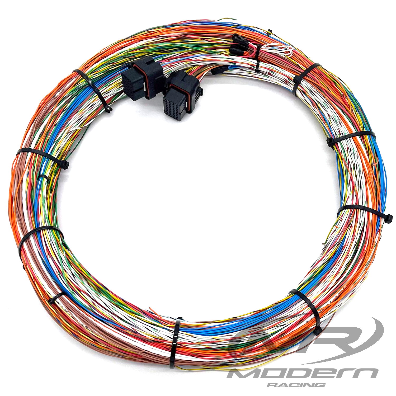 Modern Racing Wiring Solutions is proud to offer a premium replacement for the bulky factory ECU main harness. Built with Mil-spec Tefzel wire this harness is assembled stronger and more durable than standard harnesses, offering greater heat and abrasion resistance. Designed to work with Holley HP, Terminator, Terminator X, and Dominator systems this unit is a must have for customers who are looking for a clean and easy install. Our harnesses are offered in both 10' and 15' base lengths, with a 15' shielded wire on all sizes (Ideal for driveshaft speed). We've even taken it a step further, by giving you the option of adding in pre-assembled splices to help take away the frustrating labor and headaches normally associated with wiring. Add in the fact that our harness is over 25% lighter than the factory unit and you'll find upgrading to our Mil-spec harness is a no brainer.