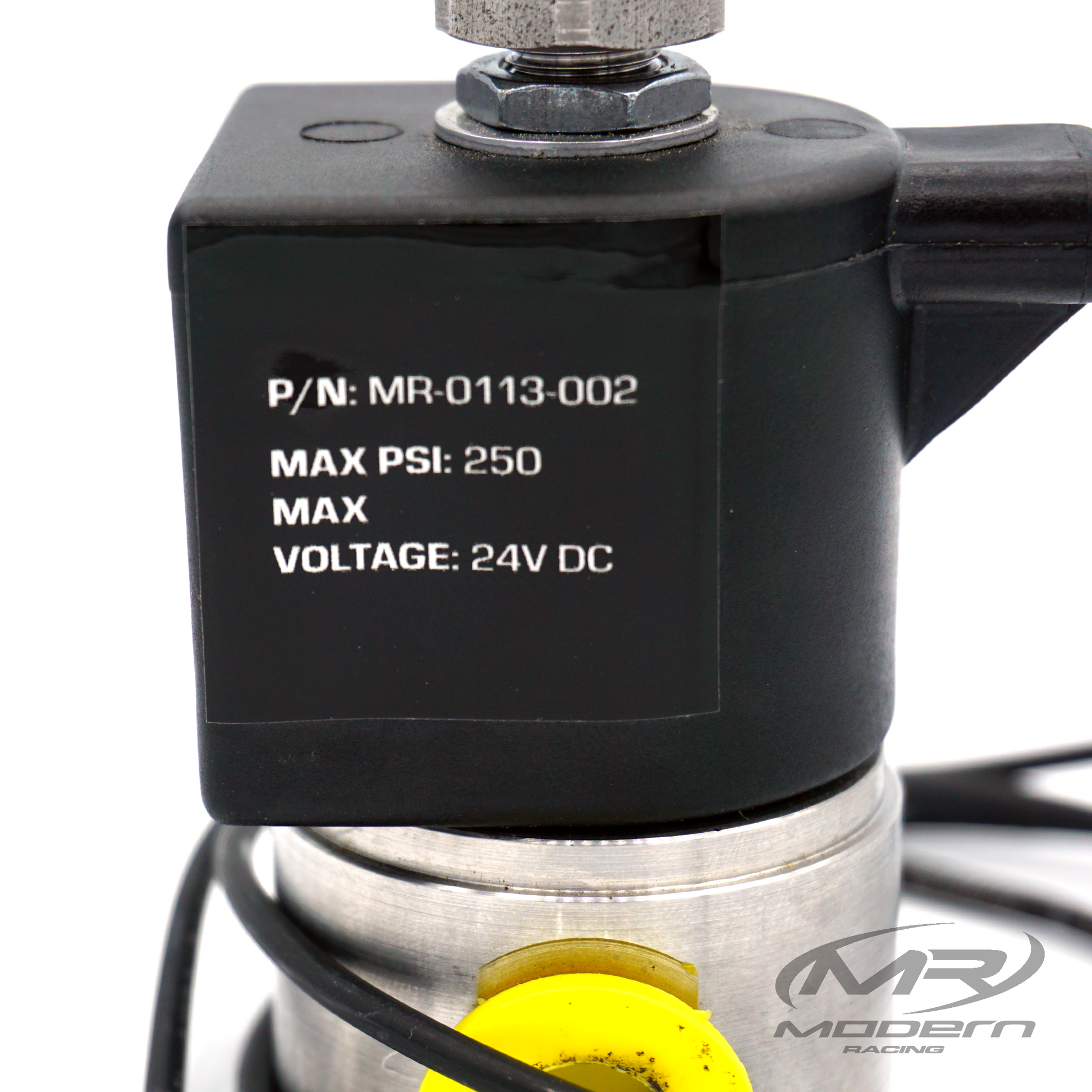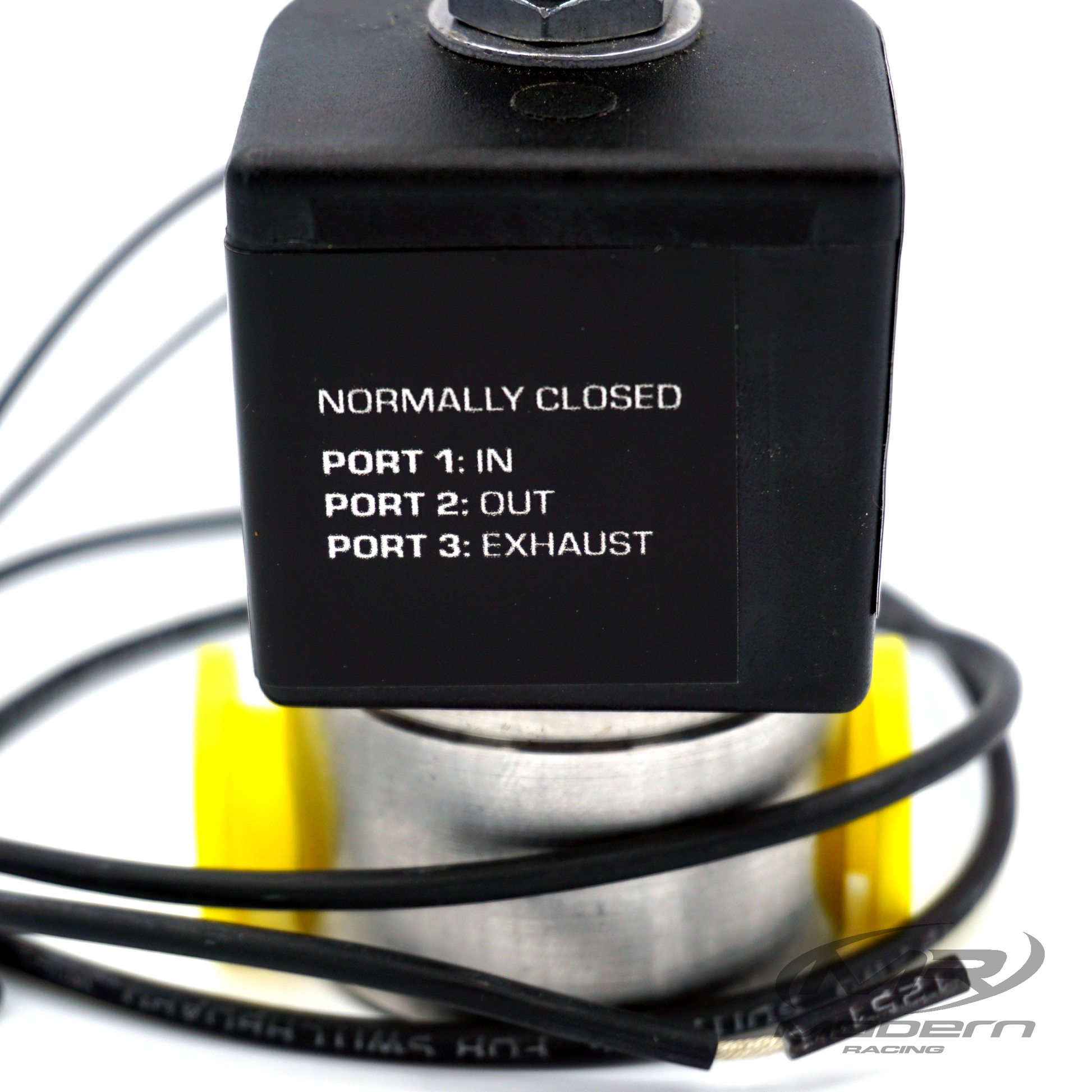 This air solenoid is set-up to operate normally closed and is rated for 250 PSI. This unit is what we normally use to control shock rebound and/or inerter. If you're needing something to work with your air shifter or your front struts, be sure to check out our 125 PSI Air solenoid.