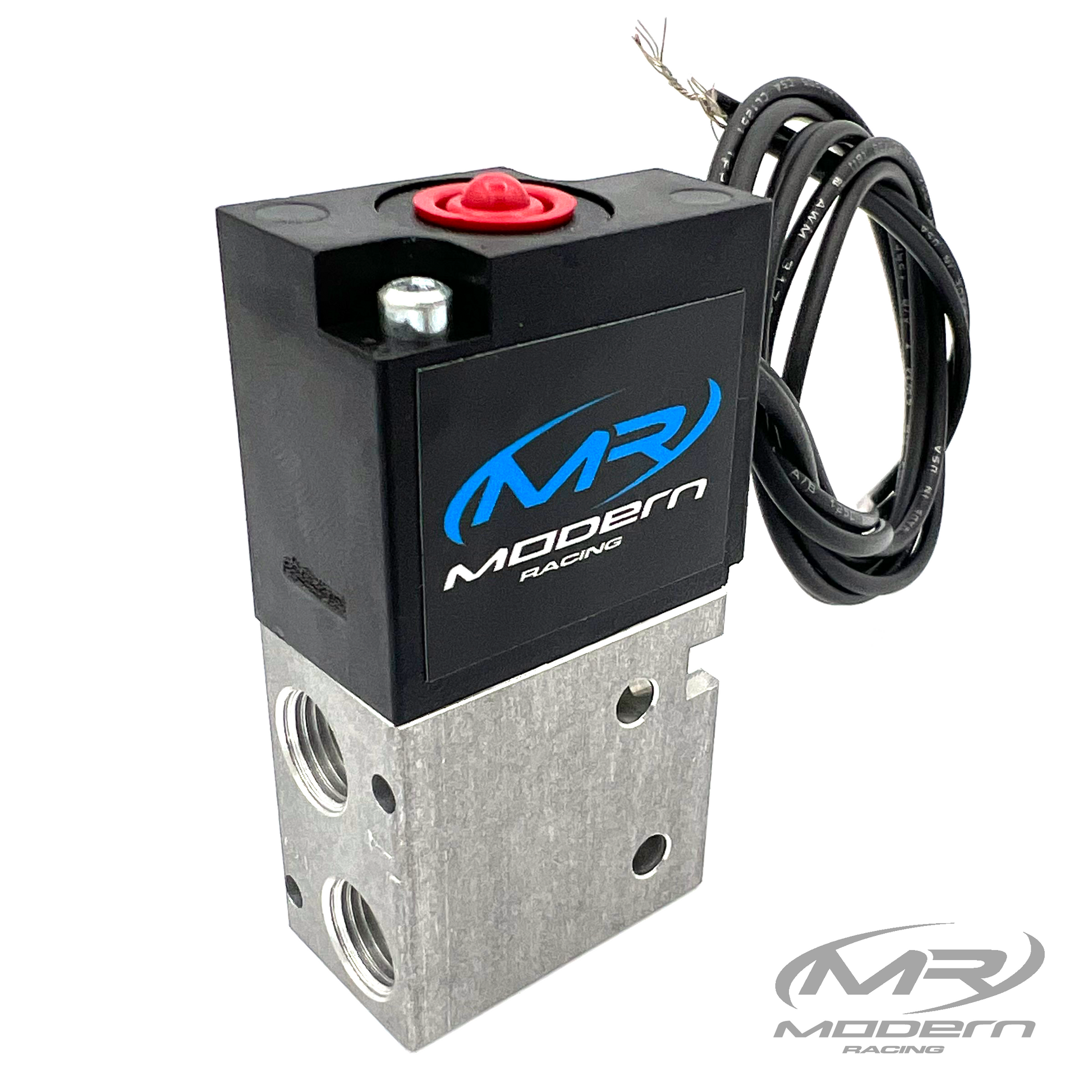 This air solenoid is set-up to work with your air shifter or your front struts and can be used in both N/C and N/O applications. If you're needing something to work with your shock rebound and/or inerter, be sure to check out our 250PSI N/C solenoid.