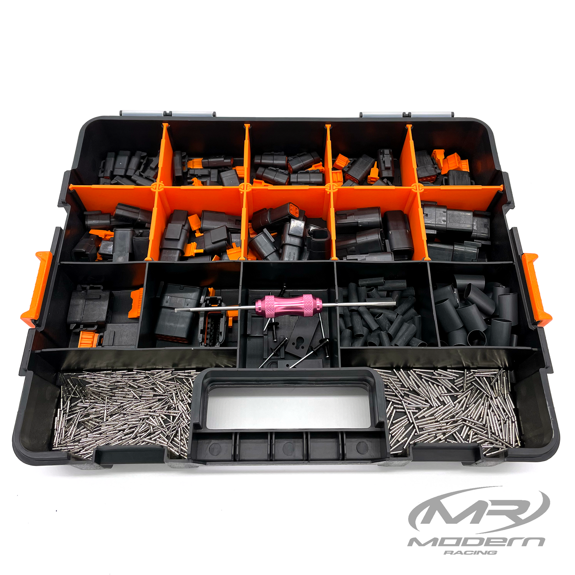 Whether you're looking to build your own harness, want an emergency repair kit for the race trailer, or just want to replenish stock in your shop you can't go wrong with this Deutsch kit. This kit was put together specifically by our MR Wiring Solutions team, to include anything a racer would need when building or repairing a harness in their car. It's compiled of genuine DEUTSCH components in the most common configurations (Key A). We even added in an insertion/extraction tool, glueline, mounts, and rivets to make installation as complete and easy as possible. For those looking for different options, we also offer this kit in Gray and in a DT variety. Each kit comes packaged ready to go in a multi-compartment case which is both stackable and lockable making it easy for racers on the go!