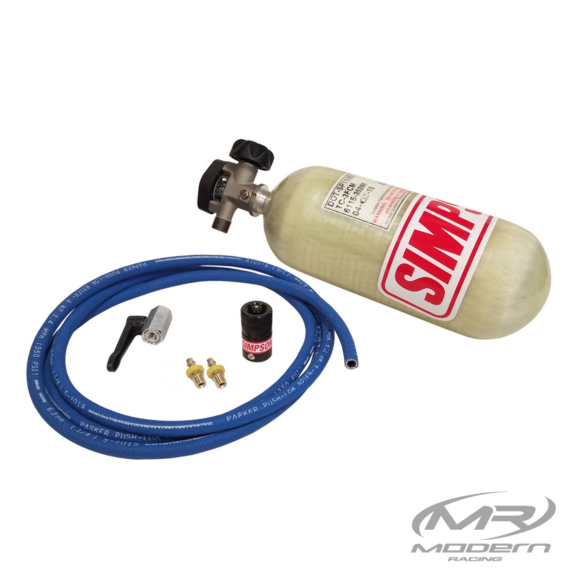 Simpson F/C external air systems were designed in 1998 to provide constant flow or on-demand air to the driver in the event of a fire or accident. The composite bottle will hold 5 to 10 minutes of air, depending on the flow setting.